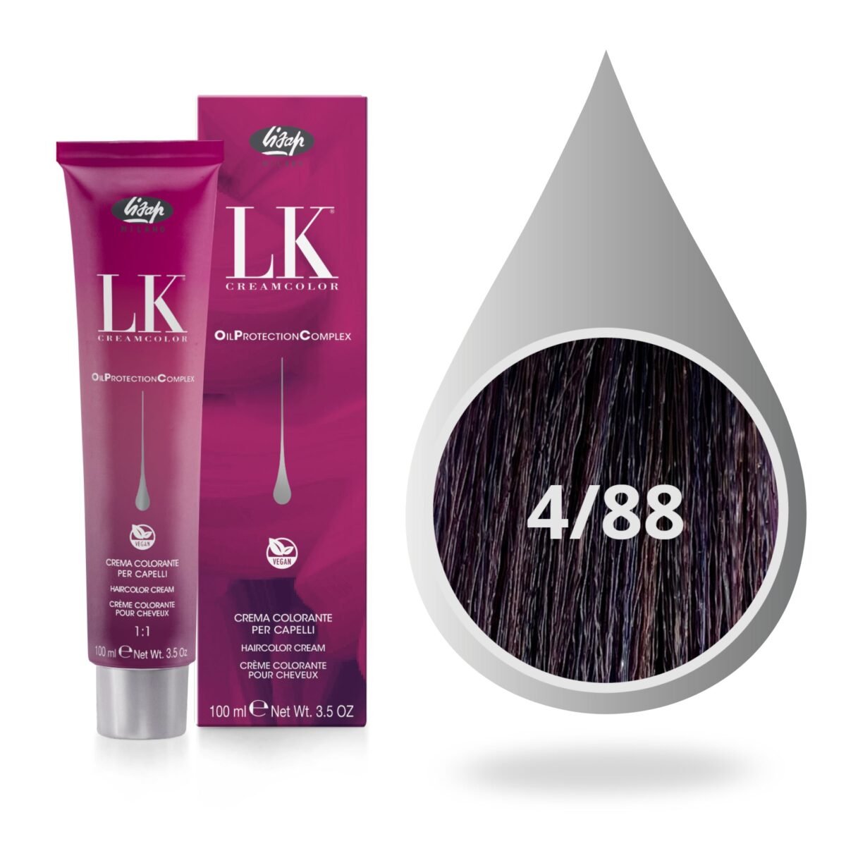 LK OPC (Oil Protection Complex) is de professionele permanente haarkleuring met een zeer laag ammoniakgehalte, verrijkt met een mengsel van Arganolie en Passiebloemolie (Ecocert Organic gecertificeerd). Geeft glans en hydratatie, zelfs aan het meest uitgebuite haar.