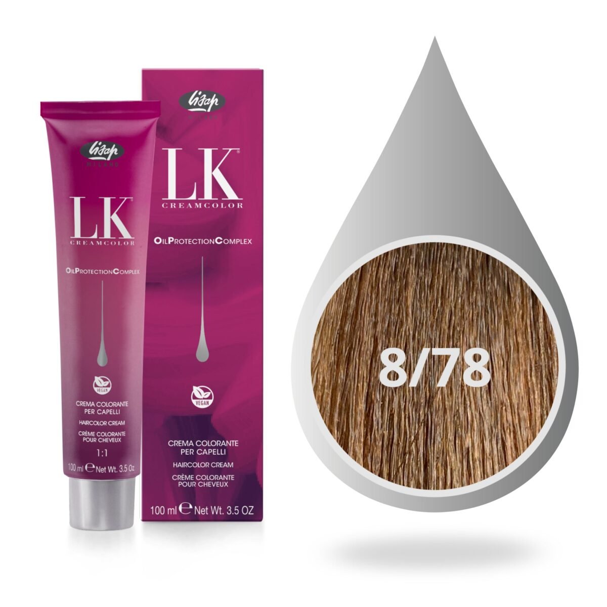 LK OPC (Oil Protection Complex) is de professionele permanente haarkleuring met een zeer laag ammoniakgehalte, verrijkt met een mengsel van Arganolie en Passiebloemolie (Ecocert Organic gecertificeerd). Geeft glans en hydratatie, zelfs aan het meest uitgebuite haar.