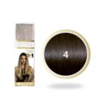 Seiseta Invisible Clip-On Hair Extensions kun je plaatsen en verwijderen wanneer en zo vaak je wil in een paar gemakkelijke en snelle stappen. Het systeem is ontwikkeld en gepatenteerd door Seiseta en bestaat uit parallel lopende secties haar, waardoor de applicatie absoluut onzichtbaar is en zorgt voor volume, lengte en kleur, meteen vanaf de aanzet van het haar. De structuur van het systeem, van flexibele keratine met 2 clips, past zich perfect aan de rondingen van het hoofd aan. Seiseta Invisible Clip-On Hair Extensions zijn ideaal voor een gemakkelijke, comfortabele en snelle verlenging of highlight/ombre effect. lengte 50 -55 cm Inhoud: 1 stuk Kleur: Bruin