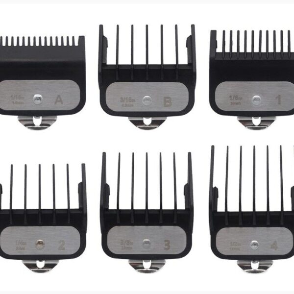 Meegeleverd worden: 6 opzetkammen, olie en reinigingsborstel.